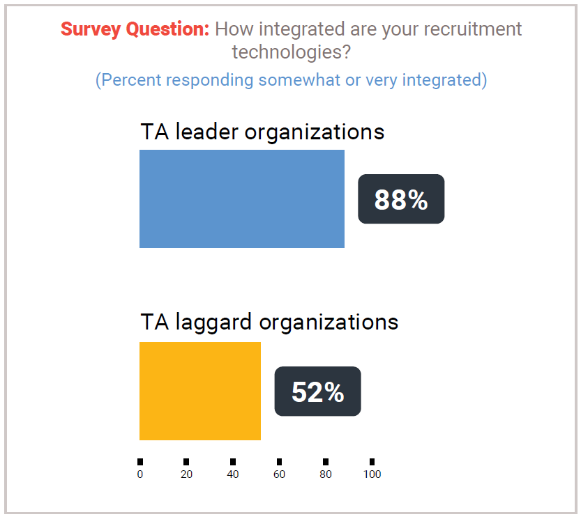 TA leader organizations are more likely to have some type of integration within their tech stack