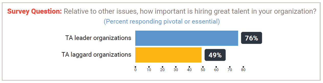TA leader organizations place far more emphasis on the importance of hiring great talent