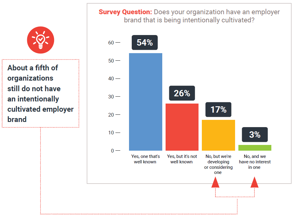 Only about half of organizations intentionally cultivate and manage an employer brand that is well known