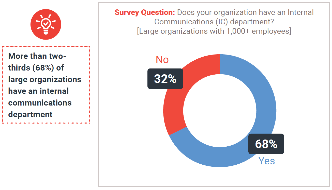 Only 35% of all responding organizations have an Internal Communications (IC) department, but most larger organizations do