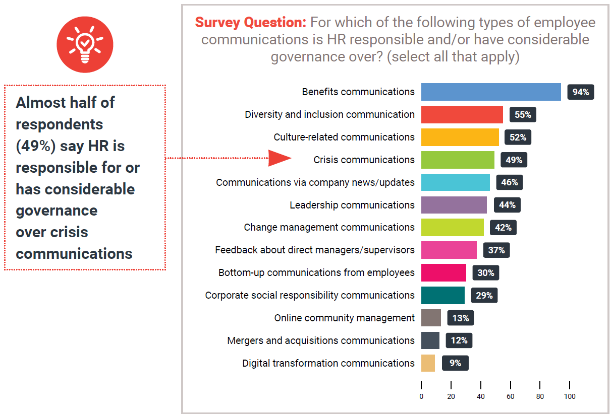 HR is most likely to be responsible for, or have considerable governance over, benefits communication, diversity and inclusion information, and culture-related communications