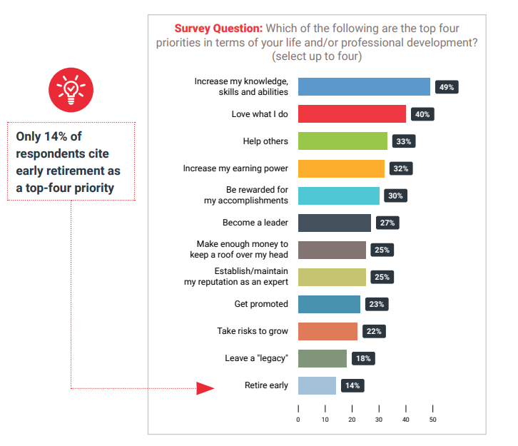 Nearly half cite the desire to increase knowledge, skills, and abilities as one of their top priorities, more than any other factor