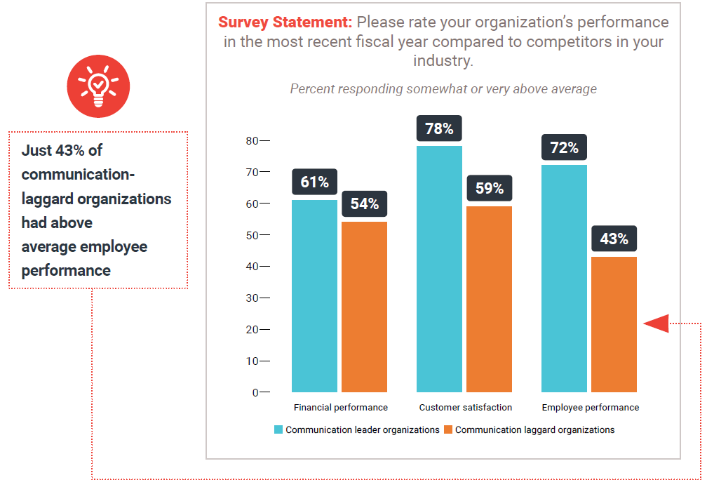 Communication-leader organizations outperform laggards on financial performance, customer satisfaction and employee performance